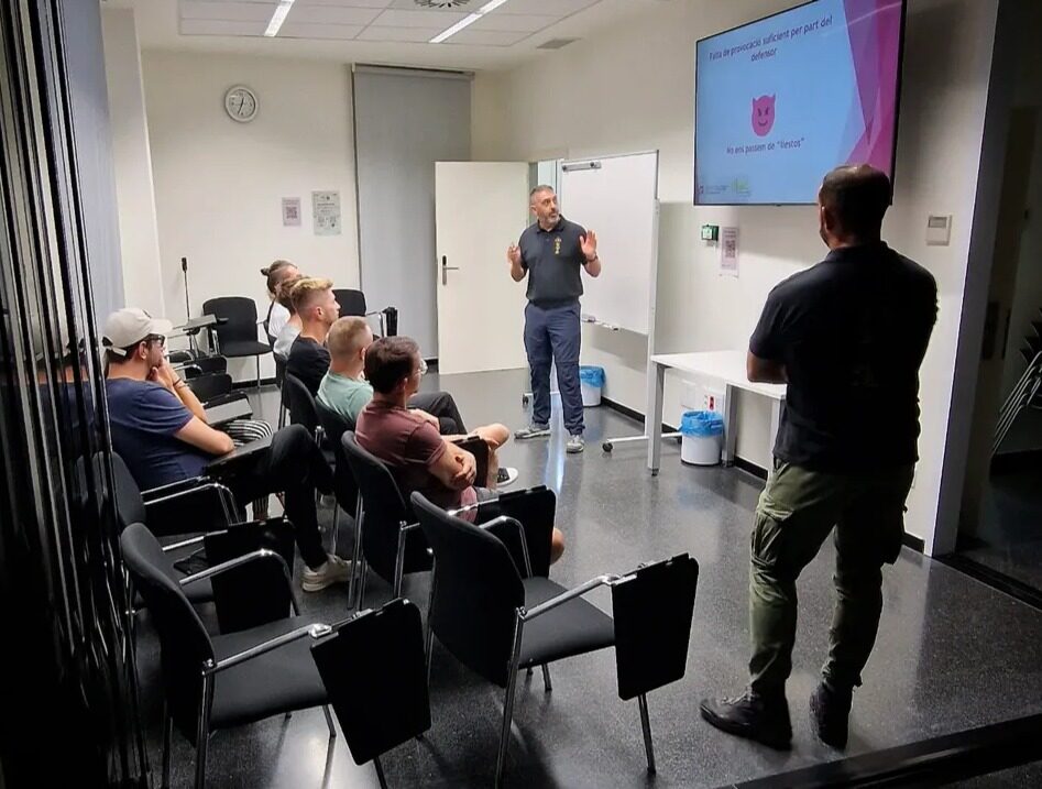La formació també ha abordat el marc legal de l’autodefensa, a partir de l’article 20 del Codi Penal i d’altres normatives com el Reial decret 726/2020, que regula les eines d’autoprotecció, i la Llei orgànica 4/2015, de protecció de la seguretat ciutadana. El personal participant ha conegut quines eines són legals —com els esprais homologats de defensa personal— i quines estan prohibides, per garantir actuacions ajustades a la llei.
