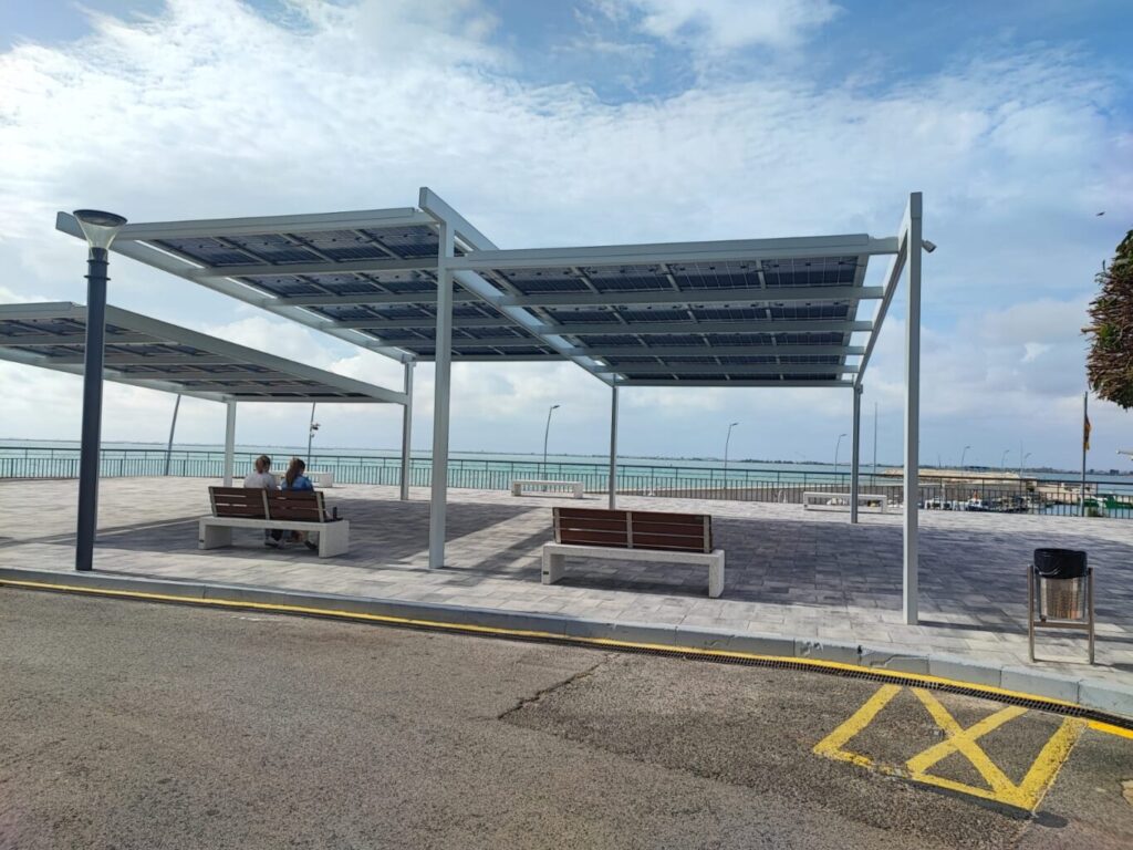 Tanmateix, s’ha fomentat la descarbonització amb la producció d’energia verda gràcies a la construcció d’una pèrgola metàl·lica formada per tres trams de diferents alçades i quatre pòrtics, que genera una ombra parcial a manera d’una zona climàtica per a la ciutadania. Sobre la pèrgola, s’han instal·lat 65 plaques fotovoltaiques bifacials de 450 Wp de potència cadascuna, que generen una potència total de 29,25 kWp de baixa tensió. Així, l’energia renovable que es produeix es destina a l’autoconsum dels serveis portuaris.
