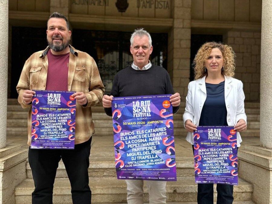 El 30 de maig, els Amics de les Arts, Catarres, Buhos i Pepet i Marieta, entre d’altres, faran parada a Amposta dins de la vuitena edició de Lo Riu Sona Festival. Així ho han presentat aquest dimecres al matí l’alcalde d’Amposta, Adam Tomàs, acompanyat de la regidora de Festes, Anna Tomàs, i del programador de Lo Riu Sona Festival, Albert Salvat. El cartell el complementen La Cosina, Naina, Partiperes, Miquel del Roig, Dj Trapella, Greta Connor, Blanc, Cloe Galiano i Anna Adarve.