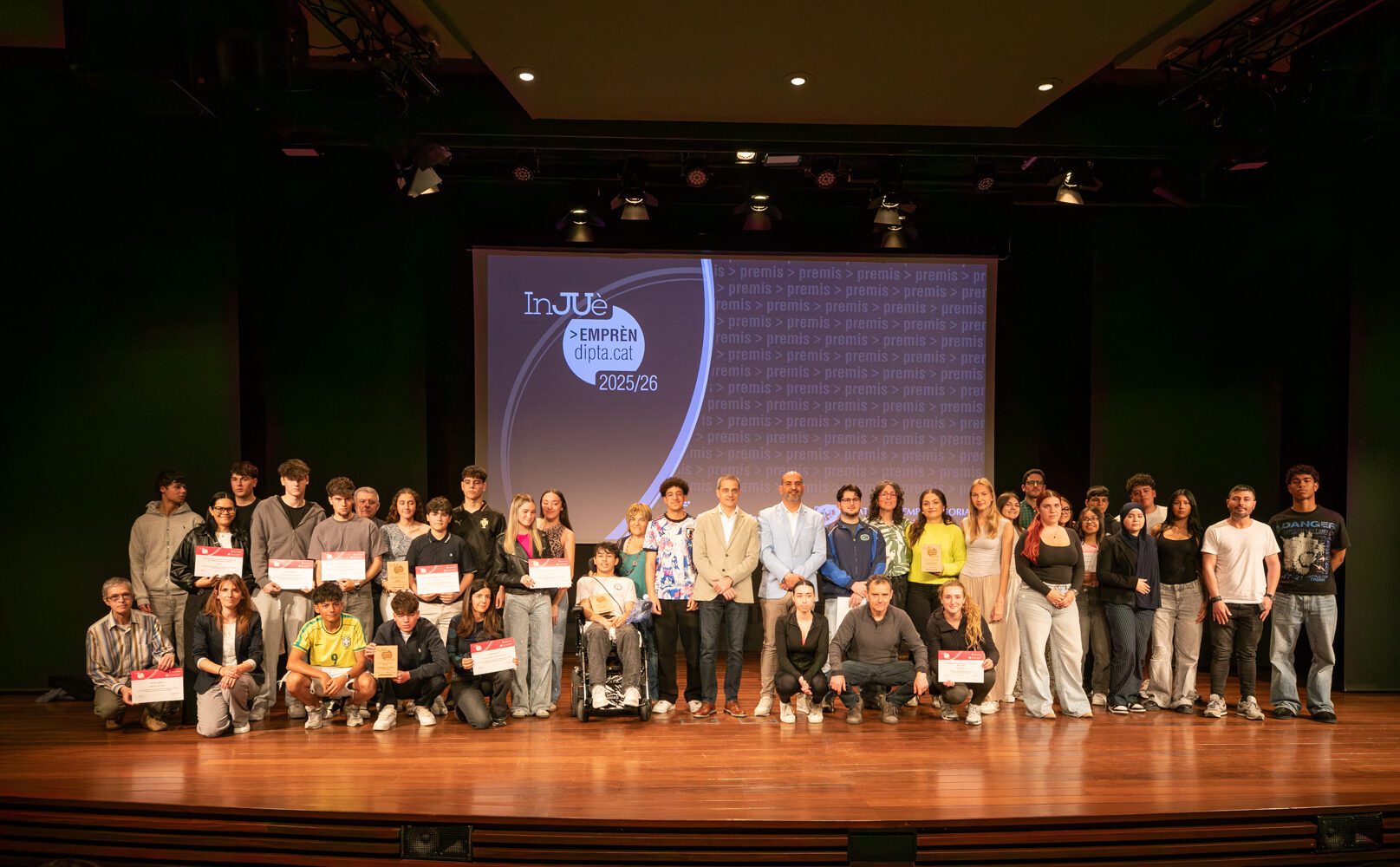 L’Auditori Diputació va acollir aquest dimarts el lliurament de la darrera edició dels Premis InJUè Emprèn Dipta.cat, un certamen impulsat per la Diputació de Tarragona i la Càtedra d’Emprenedoria de la Universitat Rovira i Virgili (URV) que, des del 2019, treballa per fomentar l’esperit emprenedor entre els joves. En aquesta edició hi han participat 325 alumnes de 21 centres educatius de les comarques del Camp de Tarragona, les Terres de l’Ebre i el Baix Penedès, amb més de 90 projectes presentats.