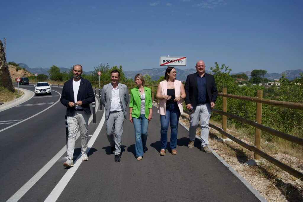 La carretera T-342 que uneix Roquetes i els Reguers és ara una via molt més segura i còmoda per a tots els seus usuaris: vehicles, ciclistes i vianants. La Diputació de Tarragona ha invertit 5M€ en el projecte de condicionament de gairebé 6,5 quilòmetres d’aquesta carretera de gran importància per a la comarca del Baix Ebre, que no només dona accés a Roquetes, els Reguers-Tortosa i Alfara de Carles, sinó que és la via d’accés al Parc Natural dels Ports i al Mont Caro. Aquest dissabte s’ha celebrat la inauguració oficial de la carretera, amb un acte en què han participat la presidenta de la Diputació de Tarragona, Noemí Llauradó, la diputada d’Infraestructures al Territori, Iris Castell, i els alcaldes de Roquetes, Ivan Garcia, i de Tortosa, Jordi Jordan.