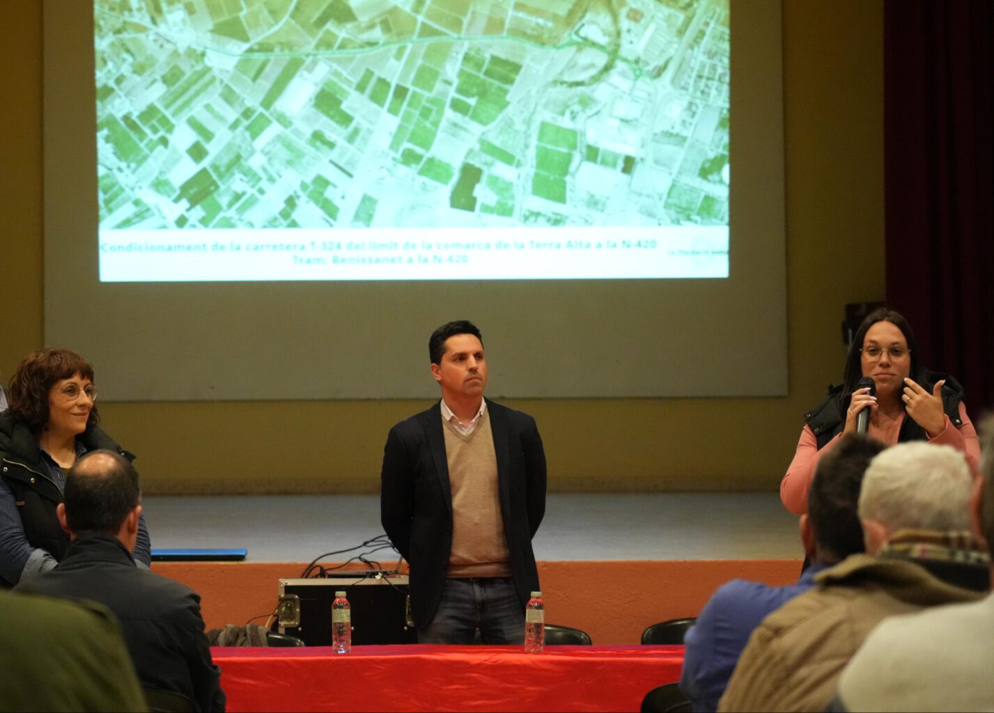 La diputada delegada d’Infraestructures del Territori a la Diputació de Tarragona, Iris Castell Cid, i l’alcaldessa de Benissanet, Núria Morera Pedrola acompanyades de tècnics de l’ens provincial, van convocar una Assemblea informativa per explicar les obres de condicionament i millora, de la carretera T-324 en el tram comprès entre Benissanet i Móra d’Ebre, als veïns afectats.