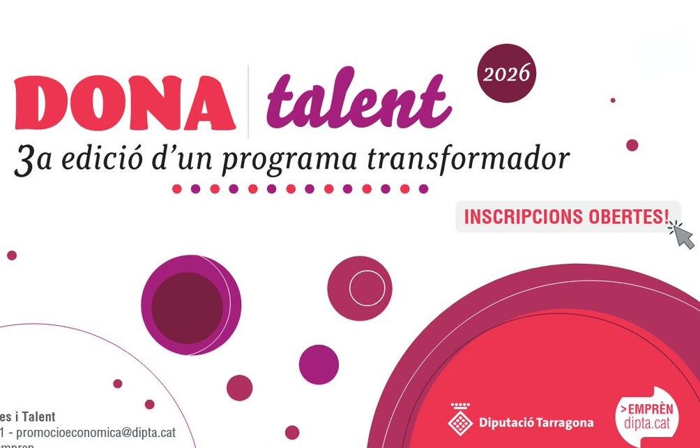 La Diputació de Tarragona posa en marxa la tercera edició del programa de formació i acompanyament per a dones emprenedores de la demarcació de Tarragona: “DONA Talent”. Aquesta proposta, que té per objectiu oferir recursos, i fer xarxa i comunitat per ajudar dones emprenedores a fer créixer els seus projectes, tindrà lloc del 4 de març al 2 de juliol i combinarà sessions virtuals i presencials al Centre d’Innovació i Formació Boca de la Mina de la Diputació a Reus.