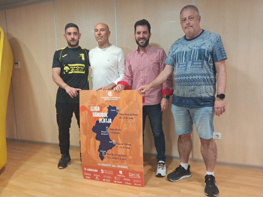 Vinaròs es convertirà aquest cap de setmana en el referent esportiu de la Comunitat amb la celebració de la Lliga d’Handbol Platja. El regidor de l’àrea, Lluís Adell, acompanyat pel gerent de la Federació d’Handbol de la Comunitat Valenciana, Miguel Soria i els representants dels clubs de Vinaròs i Benicarló ha presentat la competició.