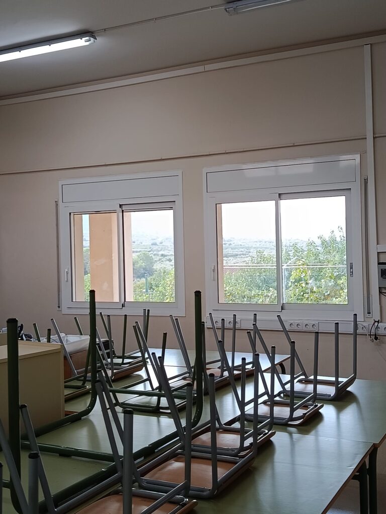 - Substitució de finestres i portes: Les antigues fusteries han estat reemplaçades per unes de noves d’alumini amb trencament de pont tèrmic i doble vidre baix emissiu. Aquesta millora augmenta l’estanqueïtat i redueix dràsticament les pèrdues de calor i fred, aïllant millor els espais de l’escola.