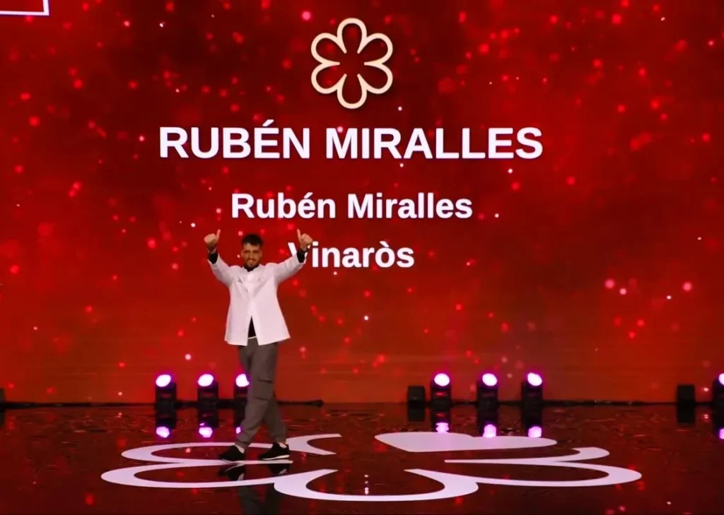 La gran novetat de la gala ha estat la incorporació del restaurant Rubén Miralles al selecte club Michelin, un èxit que porta Vinaròs al mapa de l’alta cuina internacional. El xef vinarossenc, que va posar en marxa el seu projecte gastronòmic el 2018 per reivindicar els seus orígens i la tradició culinària de la zona, ha estat premiat per una proposta que fusiona producte local amb influències mediterrànies, àrabs, peruanes i asiàtiques.