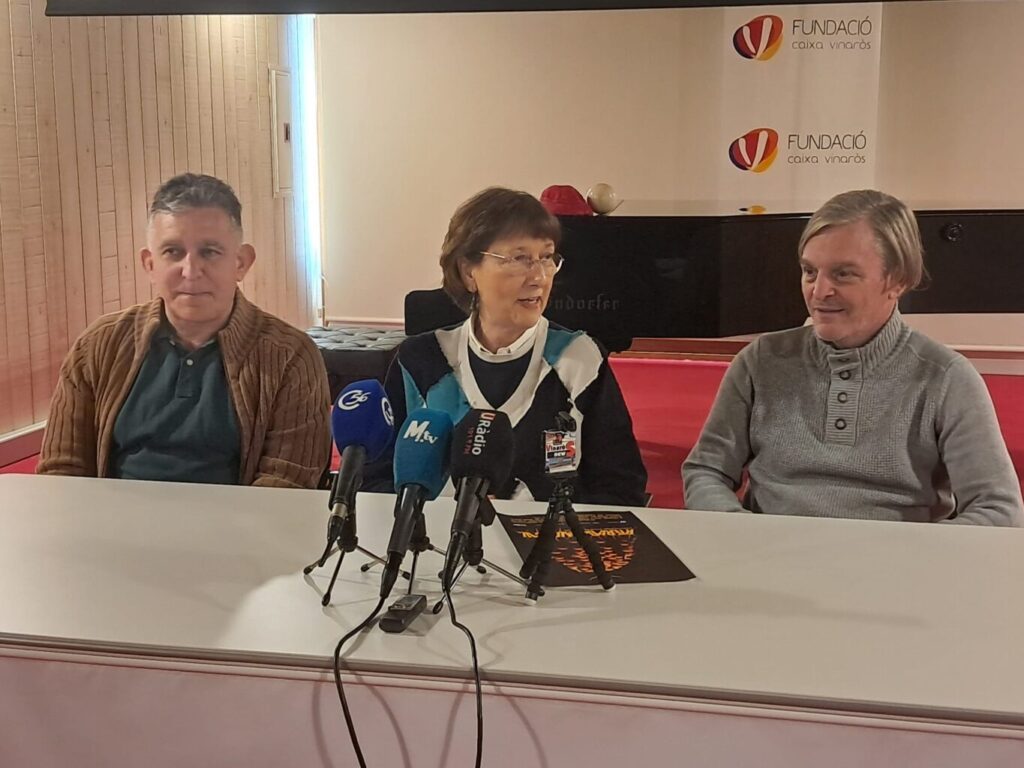 La coordinadora de la Fundació Caixa Vinaròs, Nati Romeu, ha presentat conjuntament amb el tècnic cultural de la Fundació Caixa Castelló, Alfredo Llopico, i el president de la Societat Musical “La Alianza”, Francisco Javier Torres Camós, l’activitat cultural “Rierada Musical”: un homenatge a la figura del músic vinarossenc universal Carles Santos que recorrerà el centre de Castelló el proper dissabte 18 d’abril a les 19:00 h.
